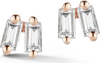 These 14-karat-gold earrings feature two baguette diamonds that adorn each ear in classic shine.