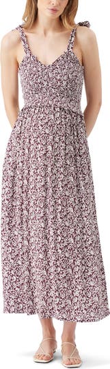 Ripe Maternity Dana Shirred Dress, Main, color, Maroon / White
