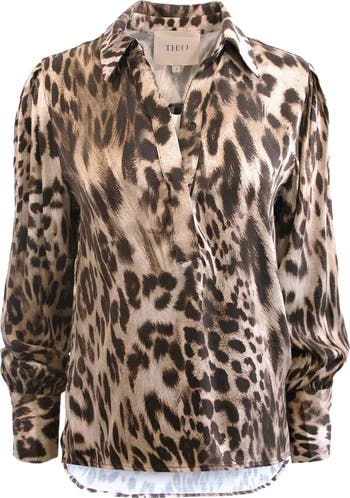 Danae Leopard Print Henley Shirt