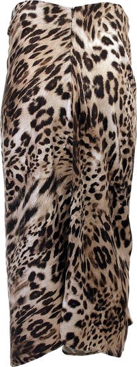 A flowy pull-on midi skirt with bold all-over leopard print and asymmetric hem. The side ruching adds soft movement, making it a perfect animal print skirt for both office outfits and weekend wear. Made from soft sustainable fabric with a silky hand feel.