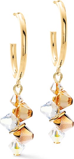 Dancing Crystals earrings gold-beige - radiant sparkle in motion The Dancing Crystals earrings in gold-beige pick up on the principle of the collection: Swarovski crystals in soft beige tones hang from gold-coloured hoops and swing with sparkling lightness with every movement. The contrast of warm crystal colours and shiny stainless steel in gold gives the earrings an elegant yet modern effect. They are easy to wear and make an impact both in everyday life and on special occasions when a little extra sparkle is required.