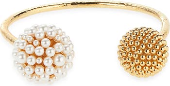 Beadwork and faux seed pearls evoke dandelion blossoms on this gold-plated cuff bracelet from the Aussie label's fall '25 collection, Hypnotic, a nostalgic outing inspired by the 1970s Australian film 'Picnic at Hanging Rock.'