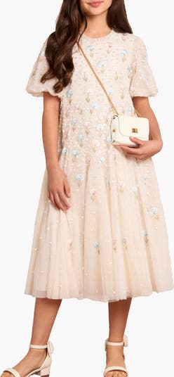 The Dandelion Ditsy Kids Dress. A charming design adorned with ditsy florals. Crafted with gentle volume and frill detailing, it’s perfect for playdates, birthdays, and family occasions. This style pairs beautifully with the Dandelion Ditsy Halter-Neck Ballerina Dress from the womenswear line for a matching look.