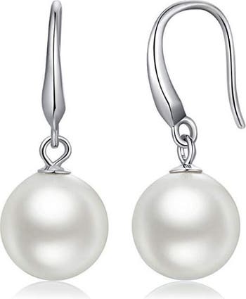 A touch of glam livens any look. These shimmering Pearl hook earrings are Sterling Silver plated Over brass and features a secure Hook closure. Everyday glam is close at hand thanks to these chic Earrings. Guaranteed to retain its original content and color.