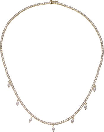 Redefine your signature look with the Dangling Pearl Charms Tennis Choker by Adina Eden, a stunning Necklace with major impact. This women's fashion necklace shines with clean lines and soft sparkle, offered in Gold. When your outfit needs polish without the pressure, it helps you feel confident and complete—like the final touch your look didn't know it needed. Complement this gold plated necklace with pieces from our Choker Necklaces collection to complete your look with ease and style. Even your simplest looks feel curated when you add this piece.