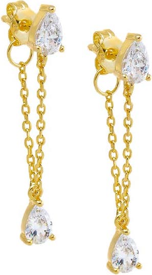 The Dangling Teardrop Chain Front Back Stud Earring shines with sleek edges and radiant sparkle.