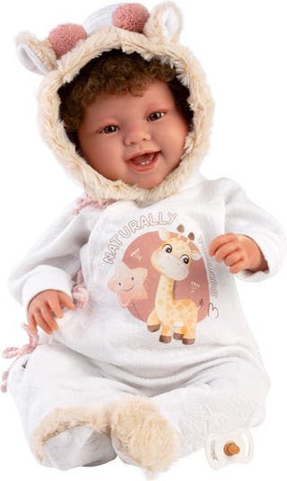 This beautifully detailed baby doll with a soft body is dressed in a cozy footie boasting a faux-fur hood with adorable teddy-bear ears. Made with movable joints, Dani sparks the imaginations of children as they develop nurturing and self-help skills.