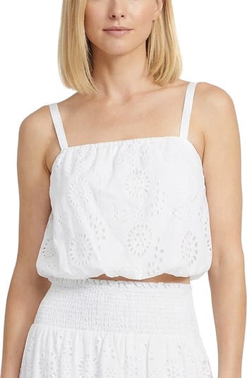 Introducing the Eyelet Dani Top, a versatile bubble hem cami top is designed to effortlessly transition from day to night. Wear it at the waist for a chic, classic look or as a crop top to show a hint of skin. The Dani Top pairs perfectly with the matching print skirt, creating the illusion of a dress when worn together. Alternatively, it can be styled with your favorite white jeans for a sophisticated, resort-ready ensemble.