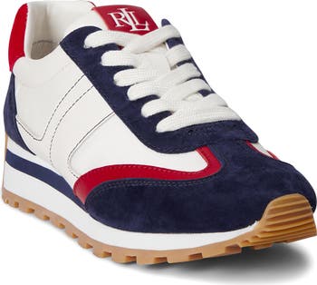 A shock-absorbent footbed evenly distributes weight for cushion and comfort in this sporty colorblock sneaker authenticated with logos at the tongue and heel.