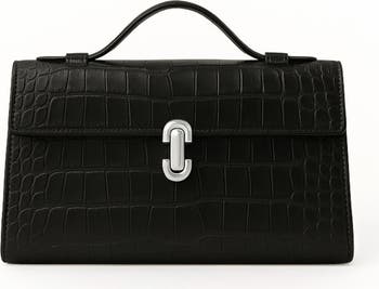 The Danica Ostrich Clutch in Black combines a luxurious croco exterior with a sleek, slim silhouette for a refined, on-trend statement. Featuring a top handle and secure turnlock closure, this clutch offers both elegance and practicality, perfect for elevating any sophisticated ensemble.
