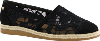 Warm weather calls for this espadrille-inspired flat featuring a breezy lace upper and soft suede accents.