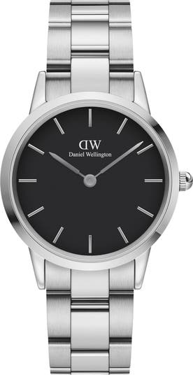 Like a blank slate ready to go with any person's style or life, this classic watch is minimally detailed with slender stick indexes on a clean dial. The bezel is slender and cut at a slight angle while the dual-finish bracelet is crafted in matching, sturdy stainless steel.