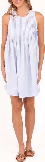 Pretty pintucks sweeten a summery dress cut from a breezy blend enriched with lightweight linen.
