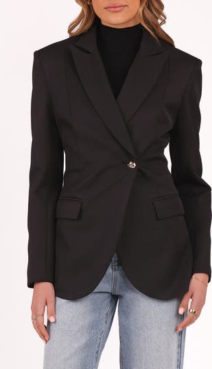 Elevate a casual look or refine a workday ensemble with this essential blazer simply fastened with a single goldtone button.
