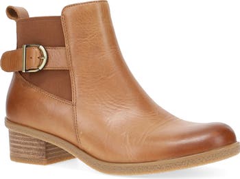 Western styling and signature Dansko comfort combine on this modified Chelsea boot made from burnished, waterproof leather and set on a slip-resistant crepe-rubber sole.