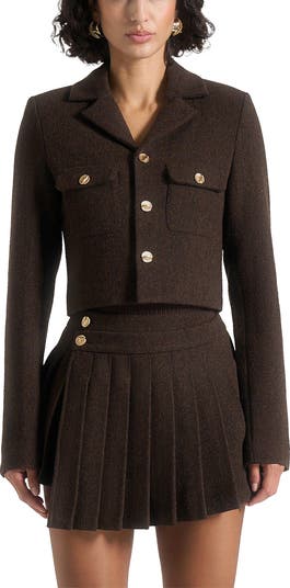 - Tailored cropped jacket silhouette for a modern, structured look