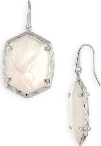 Milky mother-of-pearl is the star of the show on these signature Scott drop earrings designed with high-shine silvery frames.