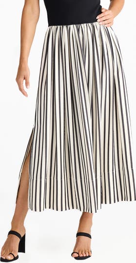 A ribbed bodice with subtle cap sleeves and drop waist gives way to a striped, gathered skirt in an endlessly wearable maxi dress.