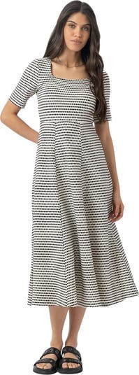 Buy the Darcey Short Sleeve Flared Dress , this comfortable jersey design is cut to a calf-grazing midi length and features our eye-catching monochrome jacquard print for a sophisticated aesthetic. From our Women's Dresses here at Saint and Sofia.