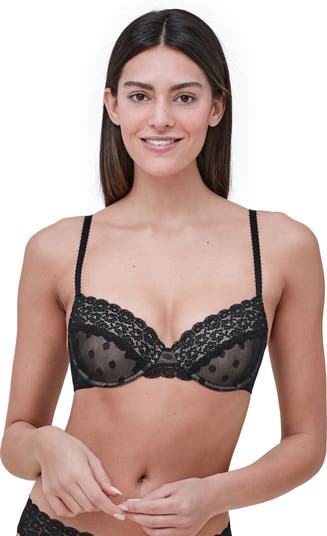 Feminine and sexy for every day. Floral lace trims the neckline to enhance your natural shape in this Demi T-Shirt Bra. The stretchy dot lace is light and comfy to wear all day. Wear with Dare Hipster or Dare Thong to complete the set.