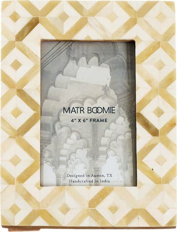 Inspired by carpet weave the Dari Sandstone Stripe 4x6 Picture Frame is a beautiful neutral colorway that would fit in with many aesthetics, whether it be a boho or mid century modern one. Handcrafted by master artisans in India the frame features a two-way easel back, metal swivel tabs to access opening, glass cover and a metal d-rings for hanging vertically and horizontally. Sizes include: 4x6