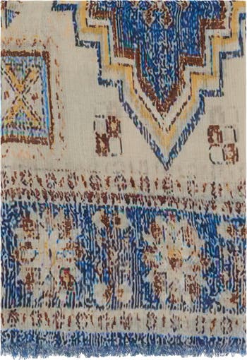 Fashioned from a soft blend of cotton and modal, the Darina scarf features a traditional print contrasting against a background. Its slightly frayed edges enhance its bohemian allure.
