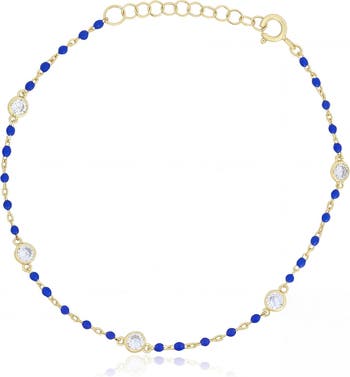 - Dark Blue Enamel Bead CZ Chain Bracelet