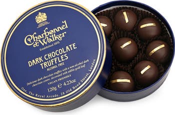 A decadent treat for dark chocolate lovers, these truffles are filled with a dark chocolate center and decorated with a striking flourish of edible gold leaf.