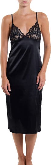 Smooth and sultry, this irresistible chemise features a luxe satiny sheen and a romantic lacy contrast.