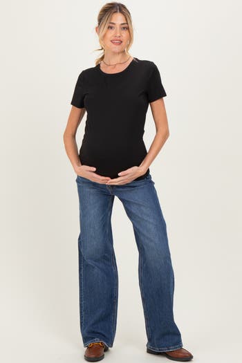 Elevate your maternity style with these trendy wide leg maternity jeans, designed for ultimate comfort and a flattering fit at every stage. The soft, stretchy waistband gently supports your growing bump, while the wide leg cut offers a modern look and easy movement. Perfect for casual days or dressing up, these jeans pair effortlessly with your favorite tops and shoes. Enjoy all-day comfort and chic style—your go-to pair for pregnancy and beyond! Machine washable for easy care, these jeans will keep you feeling confident and stylish from bump to baby.