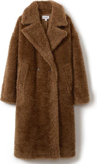 A double-breasted design enhances the everyday sophistication of this plush faux-fur coat.