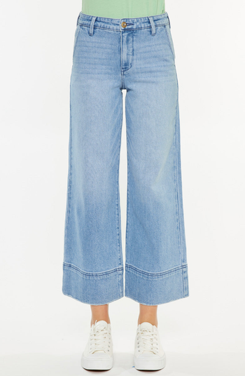 Darla High Rise Wise Leg Jeans are here to become your new comfort style jeans. With a wide leg and a 4" Hem to make you stand out. In a Medium Wash color made from comfort stretch denim, comfort with style. Features a slant pocket, a zip fly with back dart detail.