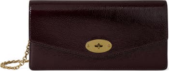 A gleaming turnlock closure and chain strap put the polish on a sleek compact clutch fashioned from glossy patent calfskin in an aubergine-inspired hue. A perfectly organized interior completes this sought-after style.