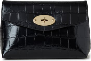 Crafted from croc-embossed Italian leather with a signature Postman's Lock, this cosmetics case is so sophisticated that it easily doubles as a clutch.