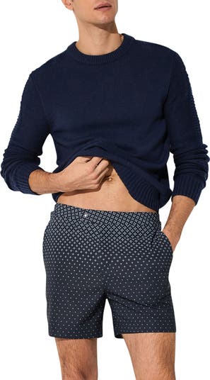 Tailored like shorts and designed to take you from land to water and back in comfort, these swim trunks made of stretchy, quick-drying fabric feature adjustable side tabs to help you maintain a perfect fit. The flat front and mid-thigh length give you a resort-ready look, while multiple pockets provide all-activity convenience.