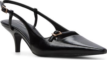 A svelte snip toe and modest heel offer easy and stylish balance on a streamlined slingback pump featuring a faux-leather upper and cushioned by B.E.D Foam Comfort Technology.