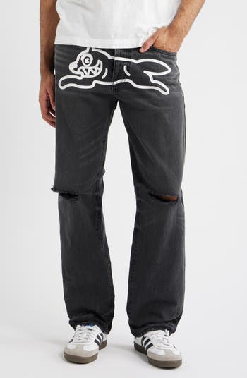 A faded wash and ripped-out knees give these low-stretch jeans a lived-in vibe, but it’s the grinning Running Dog graphic that really steals the show.