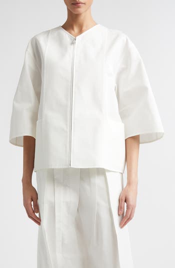 Darted Sleeve Cotton & Silk Poplin Zip Jacket
