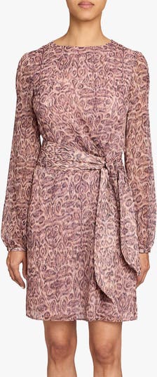 - Long Sleeve Dress in Modern Graphic Paisley Printed Georgette with Subtle Lurex