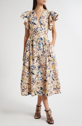 Darya Paisley Floral Flutter Sleeve Cotton Dress
