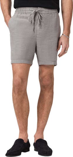 A breathable linen blend lends airy ease to drawstring-topped shorts designed with a loose-fitting silhouette and handy pockets.