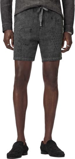 Softly slubbed linen brings lightweight comfort to easy shorts covered in abstract patterns reminiscent of vintage tapestries.