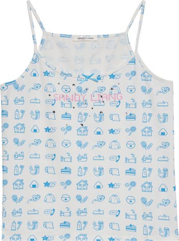 The NYC designer draws inspiration from the playful whimsy of Y2K schooldays with this stretchy cotton tank covered with an illustrative pattern sprinkled with light-catching embellishments.