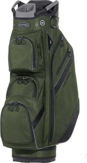 The Datrek DG Lite III Golf Cart Bag is a lightweight, feature-rich option designed for golfers seeking both functionality and value. Weighing just 4.6 lbs, it boasts a 14-way top with full-length dividers, including a rubberized putter well for club protection. The bag offers ample storage with seven zippered pockets, such as an insulated cooler pocket and a fleece-lined valuables pocket. Its Top-Lok technology ensures a secure attachment to compatible carts, preventing unwanted twisting during play. With integrated soft-grip lift-assist handles, the DG Lite III combines convenience and performance, making it an excellent choice for golfers who rioritize both quality and affordability.