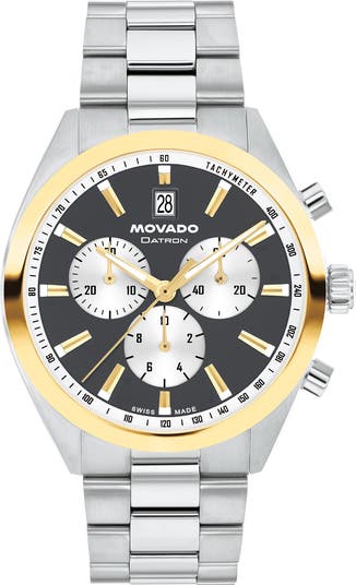 Initially introduced in the 1960s, this midcentury-inspired timepiece featuring a durable stainless steel bracelet is powered by Swiss-quartz movement with chronograph functionality.