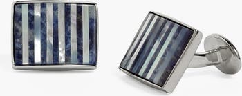 Sleek stone inlays mark handsome cuff links crafted from sterling silver.