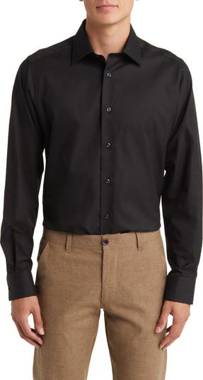 Crisp cotton twill elevates a versatile dress shirt featuring a smart spread collar and rounded, adjustable button cuffs.
