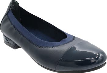 A glossy patent cap toe adds a refined flourish to this well-cushioned standby flat.