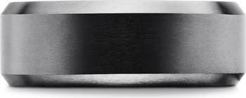 Black or grey titanium. Ring, 8.5mm wide. Imported.