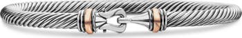 Subtle pops of 18-karat rose gold detail the hook-clasp endcaps of this sterling silver bracelet textured in the label's twisted cable for eye-catching allure.